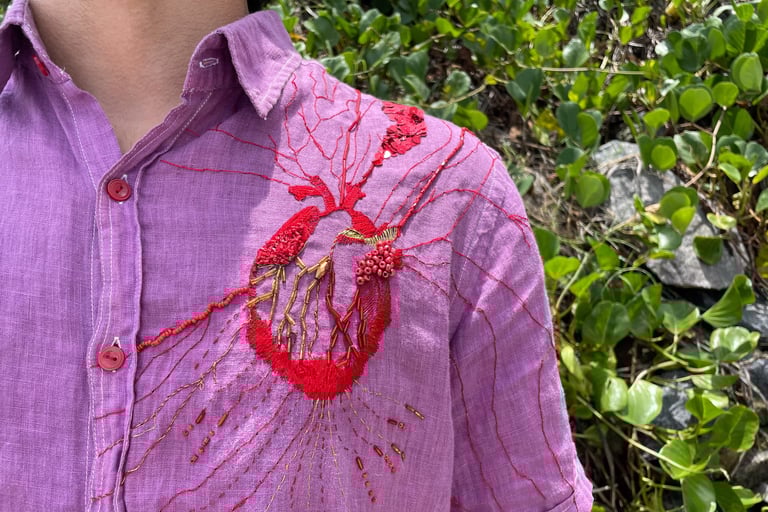 Esse foi o primeiro figurino que fiz na vida, de muitos que ainda estão por vir na gestação do tempo, hoje entendo que precisava ser um coração para dizer de onde vem toda a minha força criativa.
